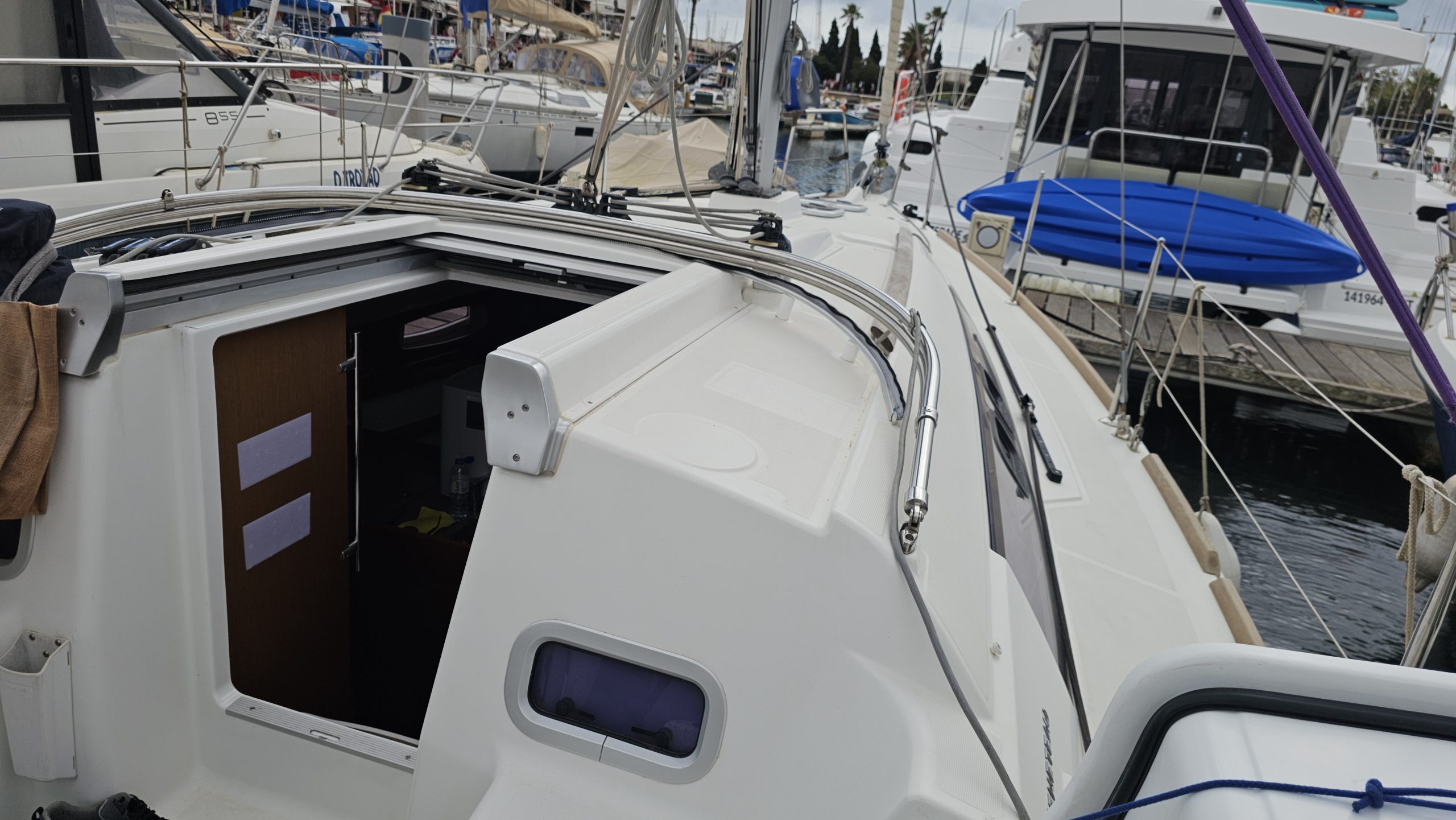 EXTERIOR DESIGN: The Oceanis 31 is the ultimate small family cruiser and boasts a classic and timeless profile. The cockpit offers a great sense of security, as maneuvers are easy. Once again, safety and simplicity are prioritized when accessing the sea through a small transom door in the skirt.