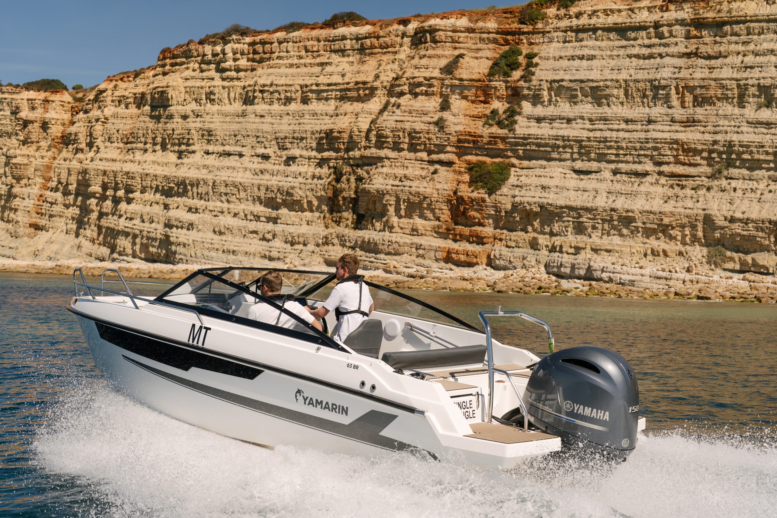 Yamarin 63 BR with Yamaha F150 for sale. PRICE 42.000€ Length: 6.35 m Width: 2.34 m Year: 2022 Engine hours: 347 h Capacity: 8 people Engine power: 150 hp Included: Engine service, Hull painting, Bimini, Anchor, Yamarin Q10″ display, GPS Plotter, Sound Speakers, Probe, Ski arch and Safety gear. *Doesn’t have a trailer.